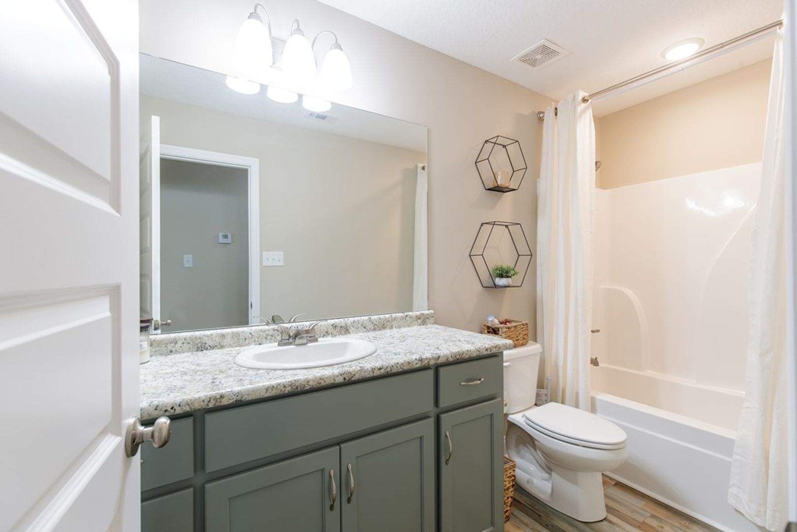 The master bedroom is generously sized and features a trey ceiling, creating an elegant atmosphere. It also boasts a large walk-in closet for all your storage needs. The master bathroom is equally impressive, with a double vanity and an extra-large shower.