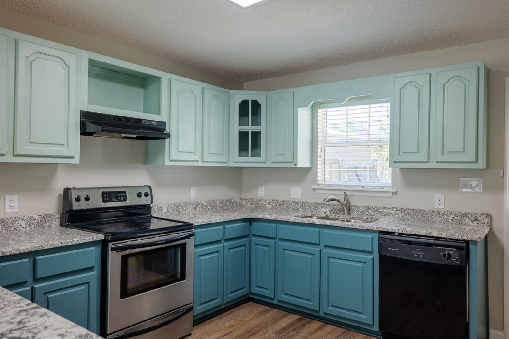 Inside, the open and split floor plan creates a natural flow that maximizes both space and comfort. The living room serves as the heart of the home, highlighted by durable LVP flooring, a vaulted ceiling that enhances the sense of openness, recessed can lighting, and a ceiling fan for added comfort. This welcoming space is well-suited for everyday living and gatherings alike.